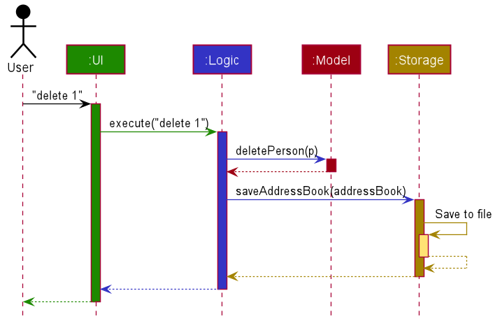 The Sequence Diagram below shows how the components interact with each other for the scenario where the user issues